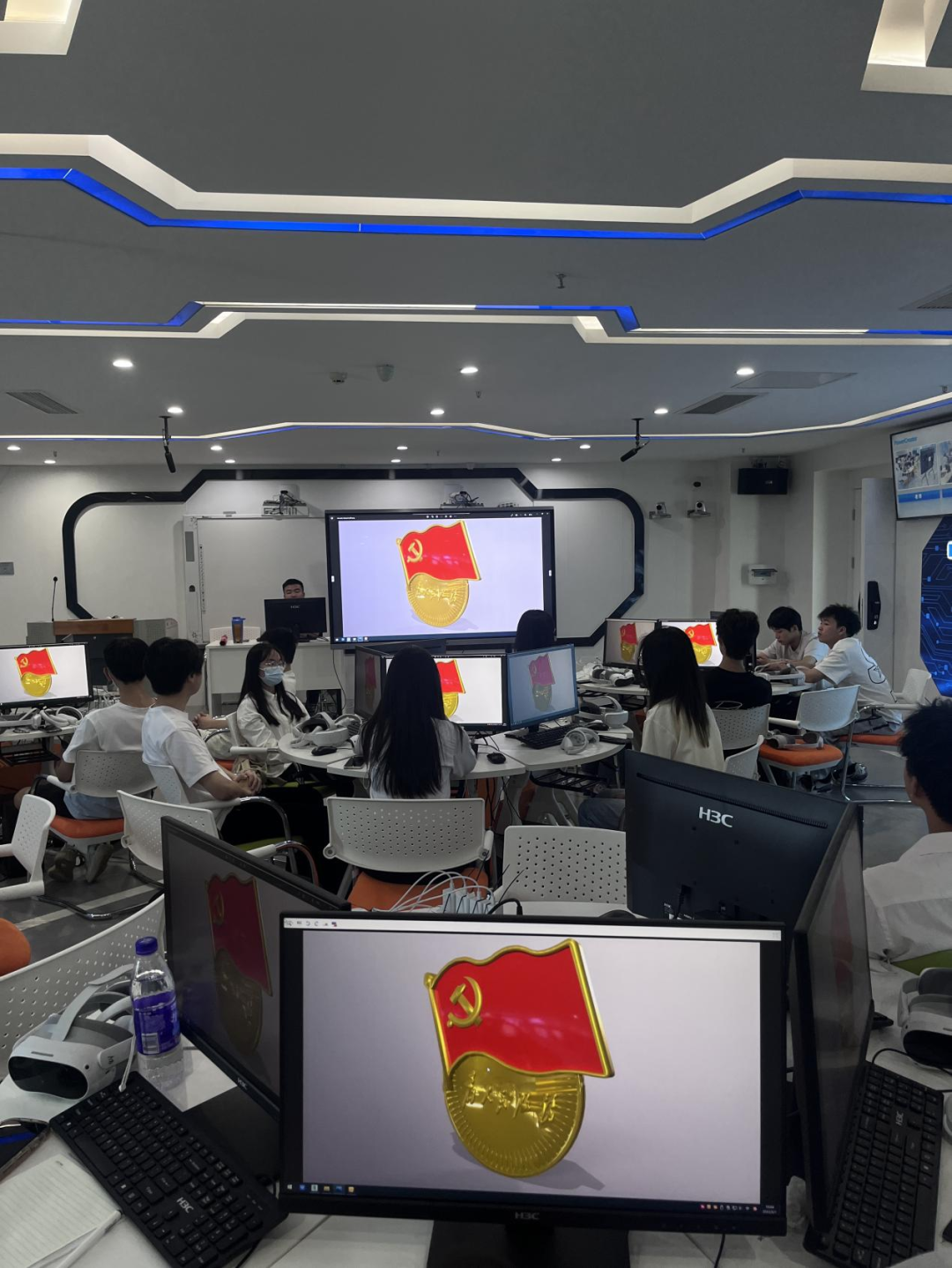 在制作过程中,叶昕之导师针对同学们遇到的问题进行了解答和指导,分享制作技巧和方法,使得学生们更快捷、方便地完成制作过程。通过细致讲解和耐心指导,学生们对使用3dMax软件变得更加得心应手,同时也加强了对党徽以及对党的认识。