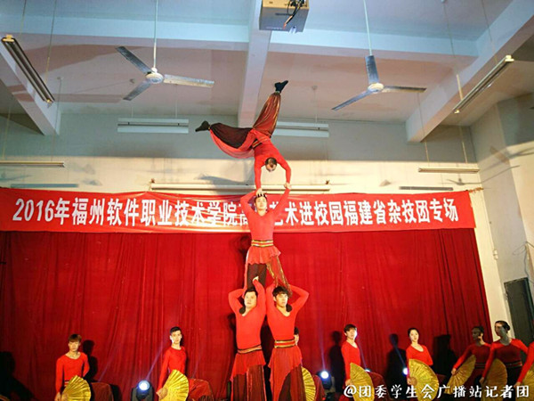 6月6日下午3点和晚上7点,由我院团委承办的福州软件职业技术学院2016年高雅艺术进校园活动,省杂技团在科报厅A隆重出演。本次活动以“走进大师,领悟经典,陶冶情操,提高修养”为活动主题,意在陶冶同学们的情操,提高同学们的个人修养。学院分批组织学生观看此次表演。
