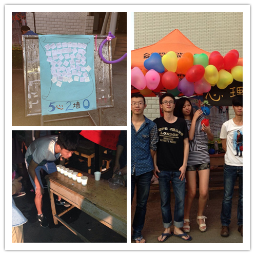 借着社团联合会举办的“520去哪?去社联抽奖”活动的契机,心理健康协会于520在生活区1号楼下摆摊,开展了“大声说我爱你”和“乒乓球穿越”的活动,目的在于让同学们大声说出自己心中想说的话,学会如何表达自己心中的爱,同时也丰富了同学们的课余生活。