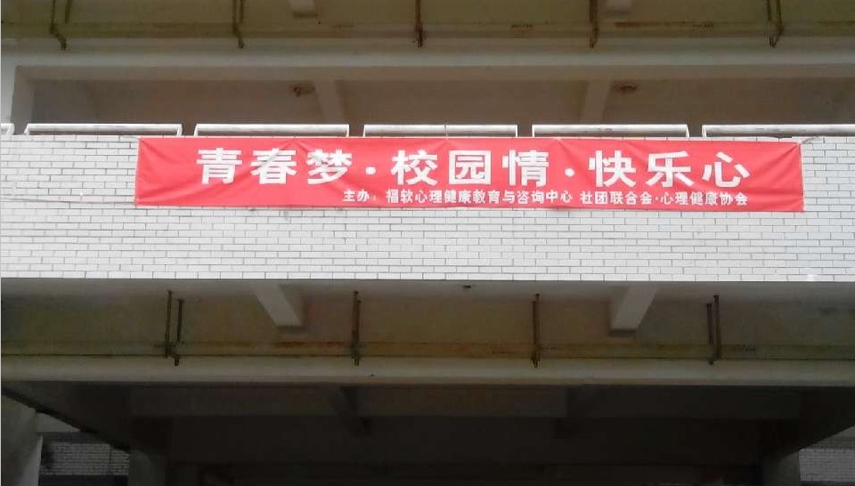 为促进全院师生的身心健康,创造和谐、文明的校园环境,学院心理健康教育与咨询中心,带领心理健康协会举办第三届“5?25”心理健康月系列活动。活动于5月16日在生活区门口和教学区悬挂横幅活动中拉开帷幕。